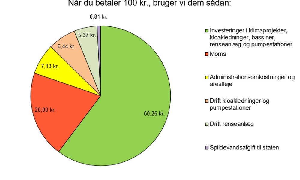 Vejle Spildevand fastholder spildevandsprisen, selvom budgettet for 2022 indeholder store investeringer i klimaprojekter, kloakledninger, bassiner, renseanlæg og pumpestationer. Selskabet har budgetteret med, at hver gang kunderne betaler 100 kr., så går 60,26 kr. til investeringer, der forbedrer klimasikringen samt transporten og rensningen af spildevand.
