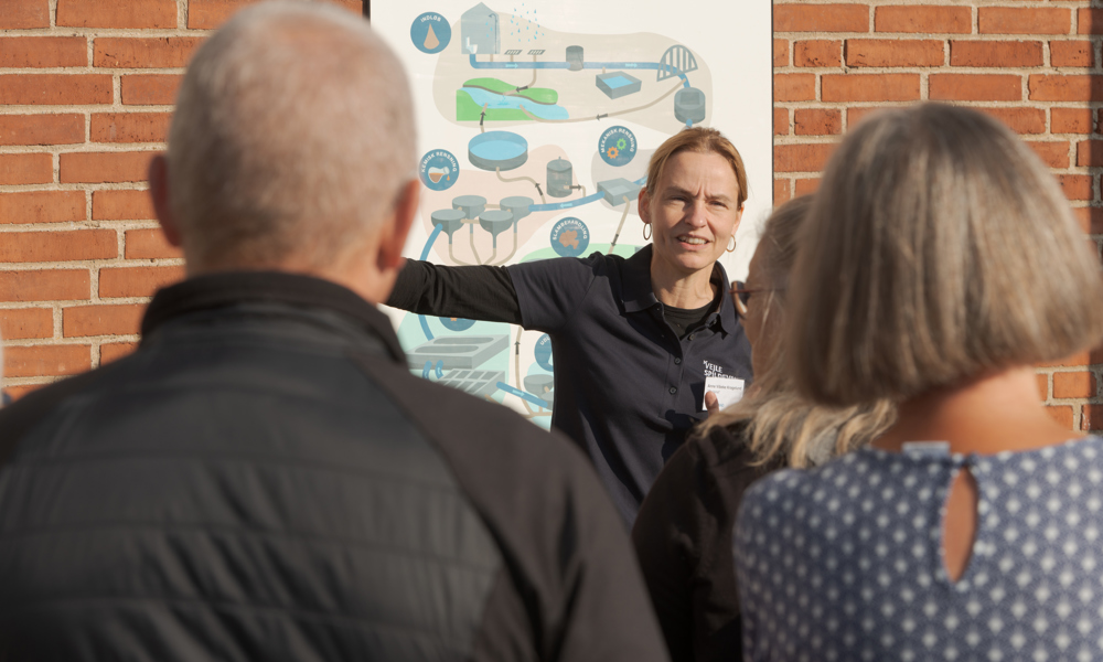 Rundvisning på Vejle Renseanlæg, hvor kunderne kunne følge spildevandets vej. I 2023 rensede Vejle Spildevand 20 milliarder liter spildevand.
