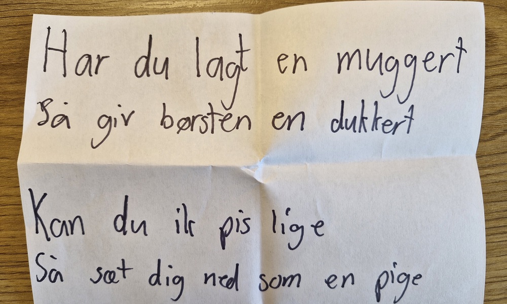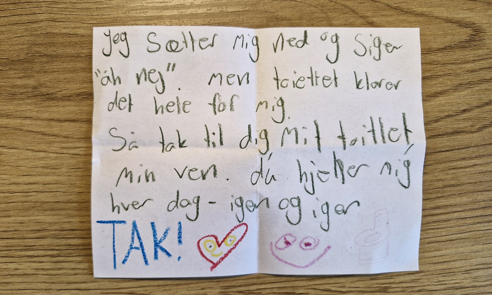 Eleverne på Grejs Friskole leverede intet mindre end 70 flotte, sjove og skøre hilsner, der fik både os og toilettet til at smile. Her kan du se et par af dem.