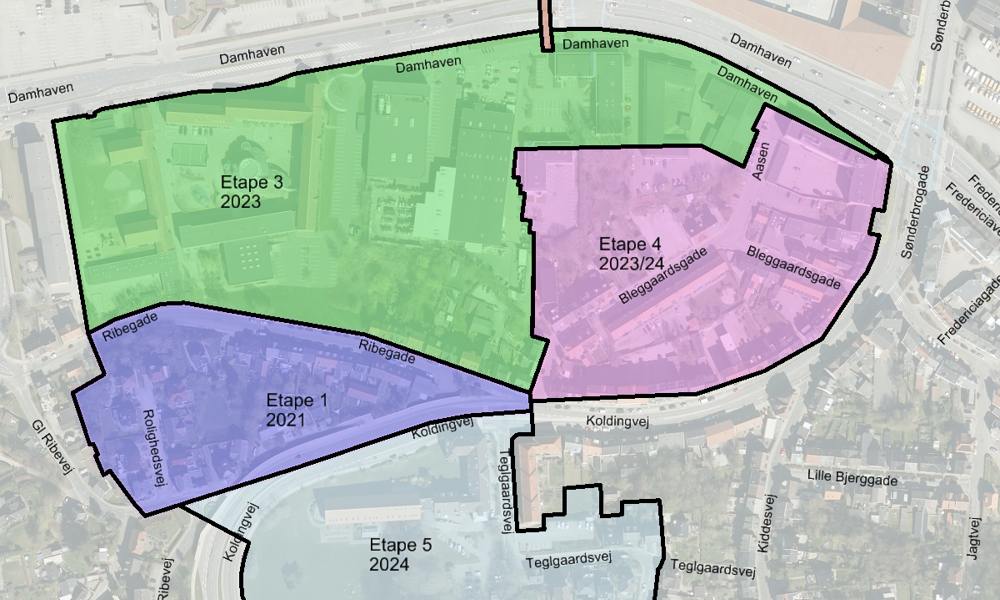 Fra uge 7 og frem til 2024 fortsætter vi moderniseringen af kloaksystemet (etape 3) i området omkring Damhaven - denne gang primært på den mindre trafikerede del af Damhaven, hvor en del butikker, bl.a. Elgiganten og Silvan, og kontorer har adresse – også kaldet parallelvejen. Den store trafikerede vej mellem Regionshuset og Midtskolen/butiksområdet bliver altså ikke berørt.