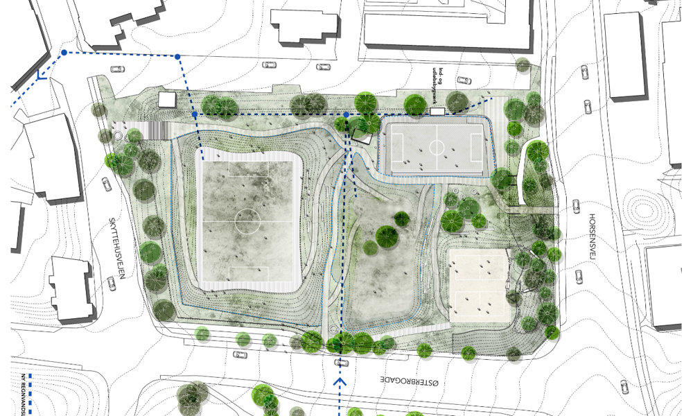 Vejle Kommune og Vejle Spildevand sætter i februar igen ind mod vandet. Nu gælder det boldbanen ved Horsensvej - Østerbrogade, hvor vejlenserne kan se frem til en ny aktivitets- og klimapark.