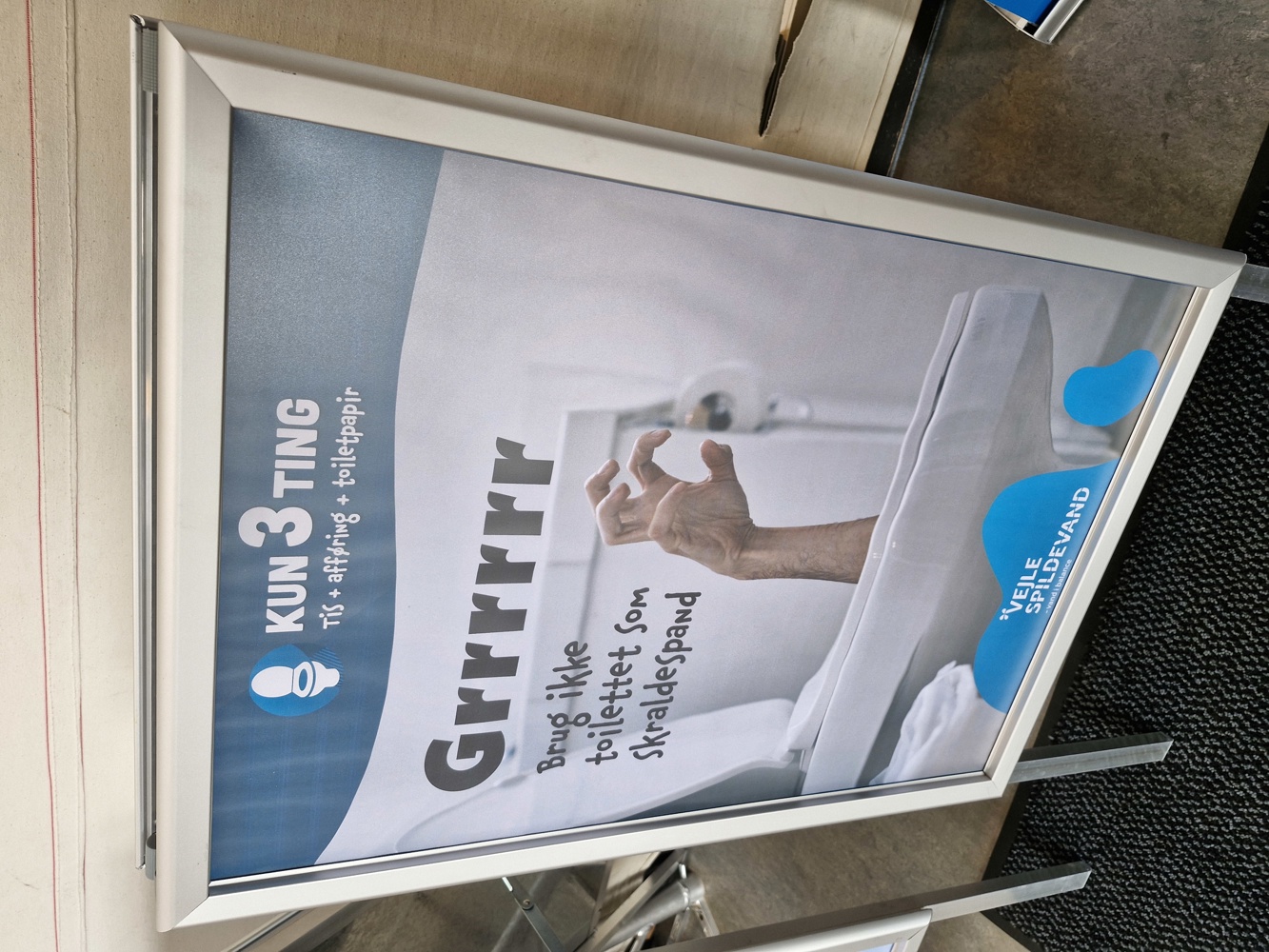 Udstillingen taler også om noget vigtigt. Nemlig at der kun er tre ting, der må komme i toilettet: tis, lort og toiletpapir. Alt andet hører til i skraldespanden.