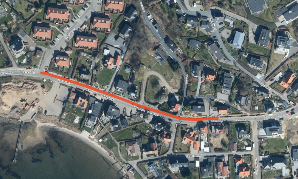 Vi graver på strækningen Strandvejen nr. 25 til nr. 39 i perioden januar til april 2026