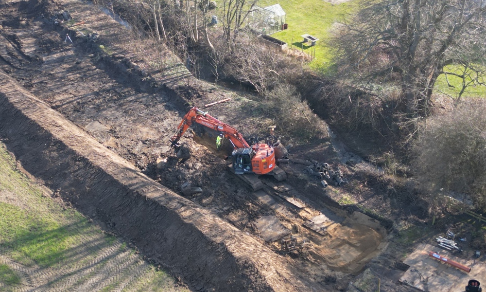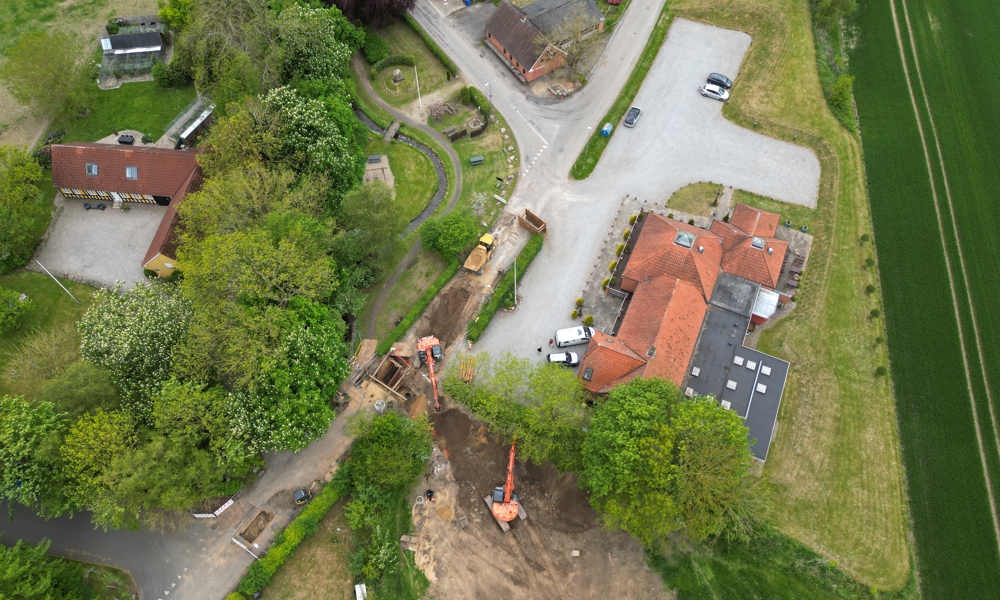 Gravearbejde er nu i gang i Skærup. Her arbejdes tæt på Skærup Å.