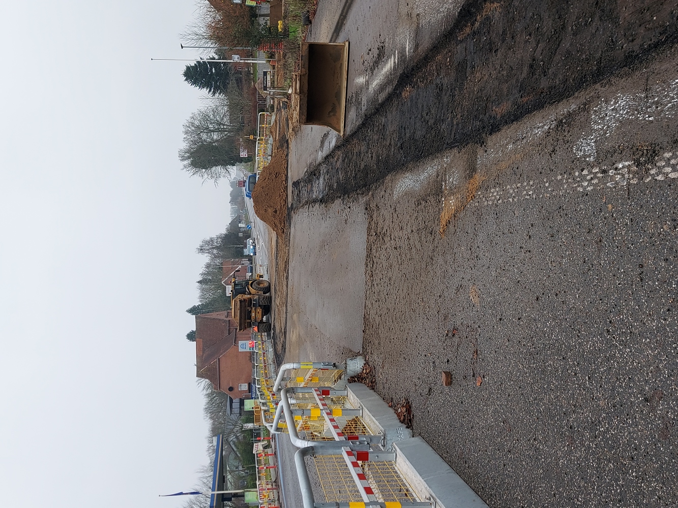 Desværre er vi nødt til at grave op i den anden side også, da den borede ledning ligger for højt. Der vil dog stadig være to spor farbare med nedsat hastighed til 50 km/t.