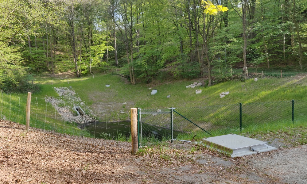 Tre nye bassiner blev anlagt nederst i slugten: To åbne og et lukket bassin, hvor vandet nu kan løbe hen og opbevares, indtil der er plads i kloaksystemet.