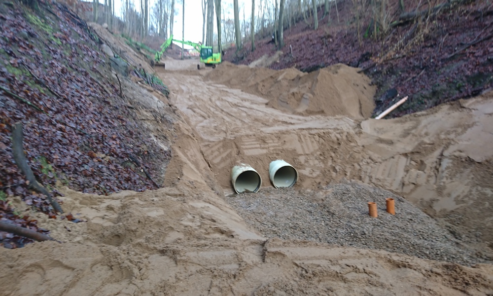 Især slugten gennem Uhre Skov – et terræn med stejle skrænter og store højdeforskelle, der gav problemer, når området blev udsat for store vandmasser – var særlig udfordret med jord-erosion ved voldsomme regnskyl.